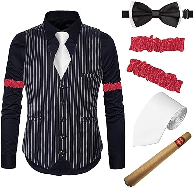 Amazon Com 1920s Mens Gatsby Flapper Stripe Vest Gangster Dress Suit Shirt Armbands Toy Fake Cigar Tie Pre Tie Clothing from images-na.ssl-images-amazon.com 1920s men's fashion was the start of menswear as we know it today. The history of 1920s fashion. Mode masculine mens fashion shoes men s shoes 1920s outfits 1920s clothing clothing styles vintage gentleman fashion history vintage fashion.
